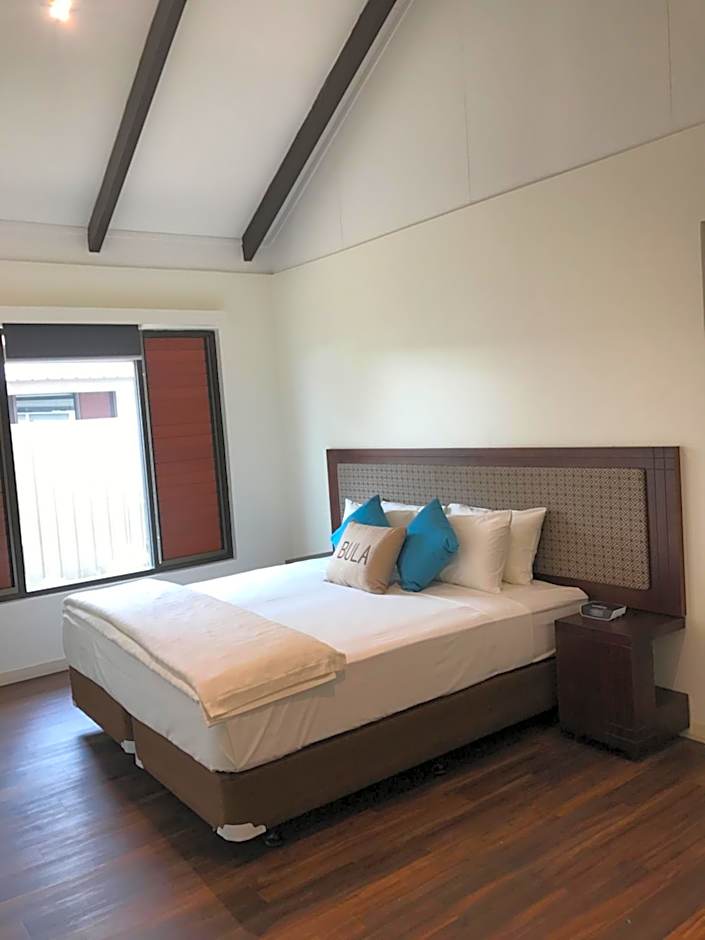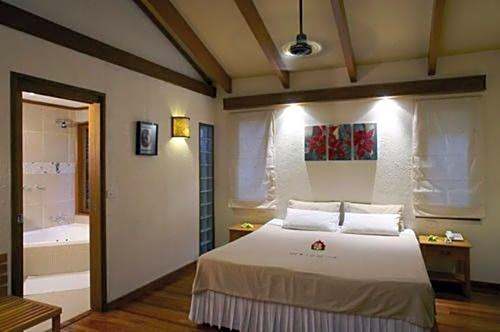 This oceanfront bungalow offers a spa bath and views over the ocean and nearby islands.