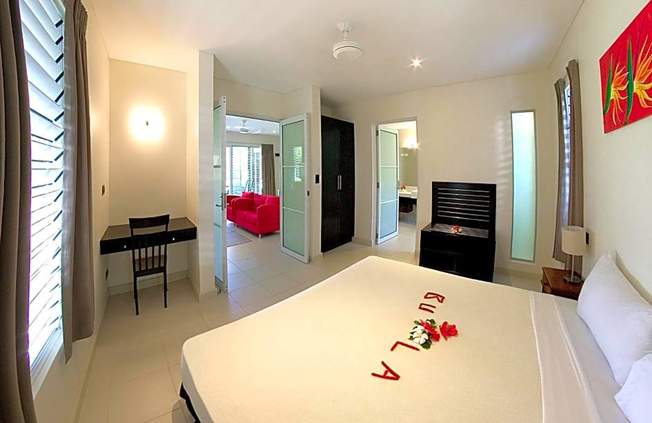 This villa features its own tropical courtyard, a private outdoor swimming pool and a lounge with kitchen.